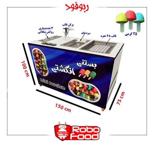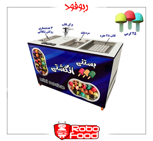 برای اولین بار در کشور، دستگاه بستنی انگشتی یا مینی پاپسیکل چوبی توسط روبوفود تولید شده و آماده عرضه می‌باشد. این محصول در یک سال اخیر در دنیا بسیار مورد توجه قرار گرفته است. با دستگاه بستنی ساز مینی چوبی می‌توانید، بستنی چوبی انگشتی را در رنگ‌ها و طعم‌های مختلف تولید نمایید و در تاپینگ‌های بستنی ریخته و به مشتریان خود عرضه کنید.